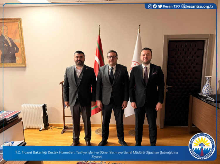 Edirne'de Keşan Ticaret ve Sanayi Odası yönetimi, Keşan Kaymakamı Aziz Mercan ile birlikte T.C. Ticaret Bakanlığı bünyesindeki üst düzey yöneticileri ziyaret ederek ticaret, gümrük işlemleri, sınır kapıları ve bölge ekonomisine yönelik konularda görüş alışverişinde bulundu.