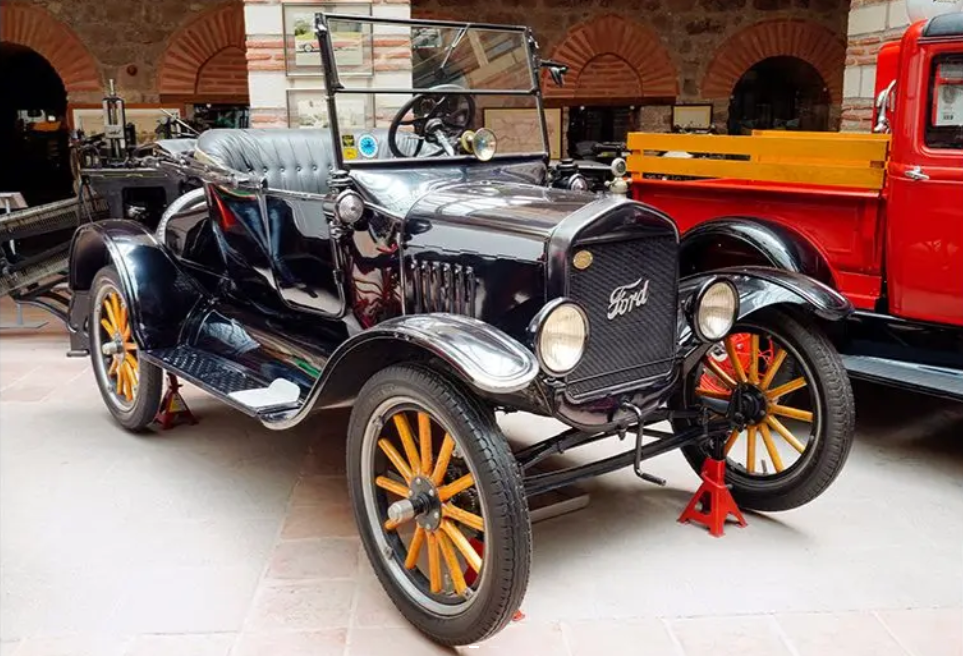 – 1908 model Ford Model T (Otomobil tarihinin en önemli kişilerinden biri olan Henry Ford ‘Model T’ yi 1908’de piyasaya sürmüştür. ‘Model T’ 1927’ye kadar, o zamana göre yeni kabul edilen seri üretim bandı prensibi kullanılarak, 15 milyon adetten fazla üretilmiştir. Müzemizde sergilenen araç ‘Ford T’nin 1918 üretimi bir “Runabout” versiyonudur.)