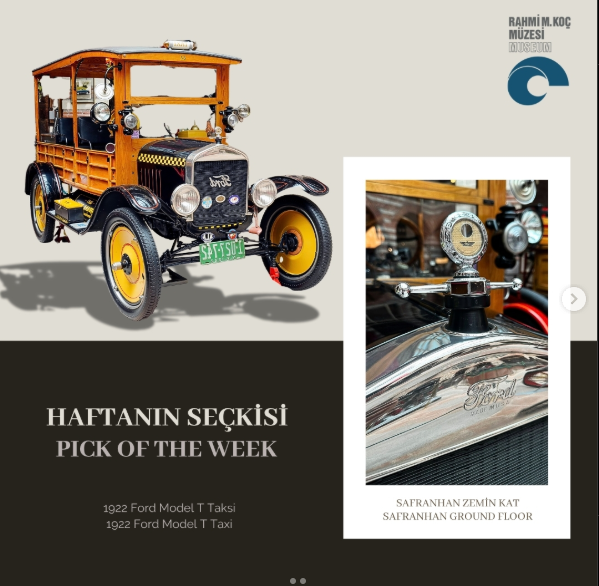 1922 model Ford (1922 Ford Model T Taxi Otomotiv tarihinin dönüm noktalarından biri olan bu araç, Henry Ford’un devrim niteliğindeki üretim sistemiyle dünyada en çok üretilen ilk otomobillerden biri olarak tarihe geçti.)